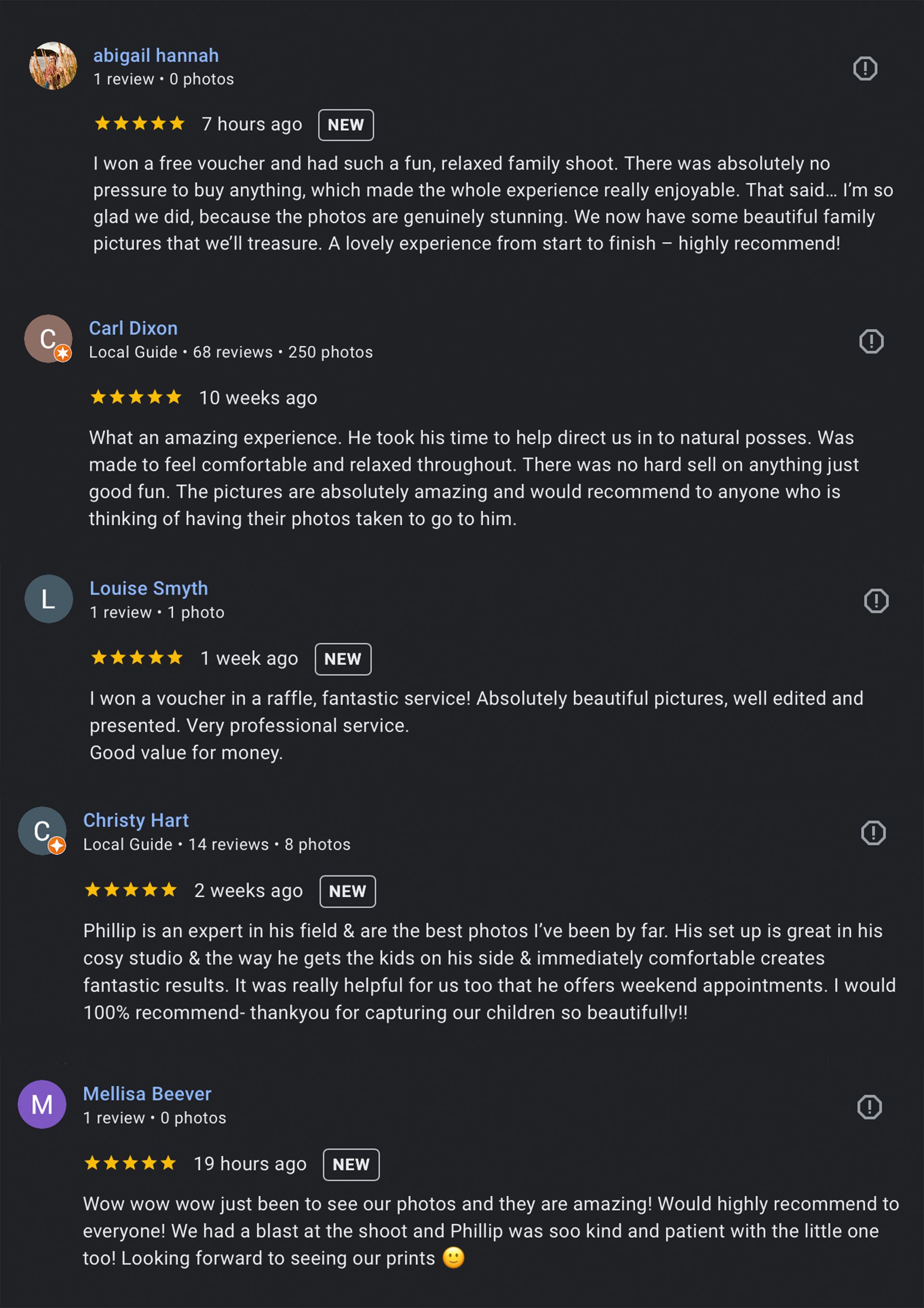 - All family members and pets must be included in a single shoot and not split over multiple bookings